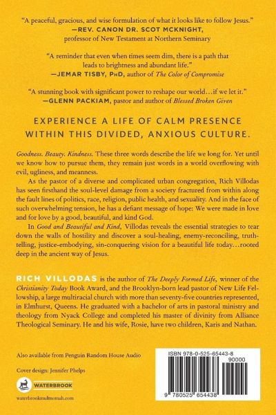 ECPA BESTSELLER • An invitation to love like Jesus and step beyond distraction and division into the joy we long to experience—from the author of The Deeply Formed Life, winner of the Christianity Today Book Award “A stunning book with power to reshape our world . . . if we let it.”—Glenn Packiam, pastor and author of Blessed Broken Given We long for a good life, a beautiful life, a kind life. But clearly that’s not the world we live in. We carry the stress of our fractured world in our bodies and relationships. Families that once gathered around tables have converted those tables into walls. Hostility, rage, and offense is the language of our culture. How did we lose goodness, kindness, and beauty? And more important, how do we get them back into our lives? These are the two questions crying out in our streets, homes, churches, and from deep within our souls. Pastor and author Rich Villodas is convinced that only Jesus offers a way of being human that is both strong and tender enough to tear down the walls of hostility we experience daily. In Good and Beautiful and Kind, he reveals how… • These three essentials are stolen by sin, powers and principalities, and trauma. • We can get goodness, beauty, and kindness back through contemplative prayer, humility, and the cultivation of calm presence. • The traits of healthy conflict, forgiveness, and justice lead to wholeness, healing, and a new collective future—when rooted in the ancient way of Jesus. Filled with fresh energy, classic truth, and practical solutions, this is your road map for stepping beyond distraction and division to love like Jesus. Doing so will change the atmosphere within you…and around you!