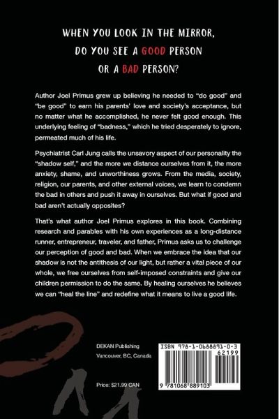 When you look in the mirror, do you see a good person or a bad person? Author Joel Primus grew up believing he needed to "do good" and "be good" to earn his parents' love and society's acceptance, but no matter what he accomplished, he never felt good enough. This underlying feeling of "badness," which he tried desperately to ignore, permeated much of his life. Psychiatrist Carl Jung calls the unsavory aspect of our personality the "shadow self," and the more we distance ourselves from it, the more anxiety, shame, and unworthiness grows. From the media, society, religion, our parents, and other external voices, we learn to condemn the bad in others and push it away in ourselves. But what if good and bad aren't actually opposites? That's what author Joel Primus explores in this book. Combining research and parables with his own experiences as a long-distance runner, entrepreneur, traveler, and father, Primus asks us to challenge our perception of good and bad. When we embrace the idea that our shadow is not the antithesis of our light, but rather a vital piece of our whole, we free ourselves from self-imposed constraints and give our children permission to do the same. By healing ourselves he believes we can "heal the line" and redefine what it means to live a good life.
