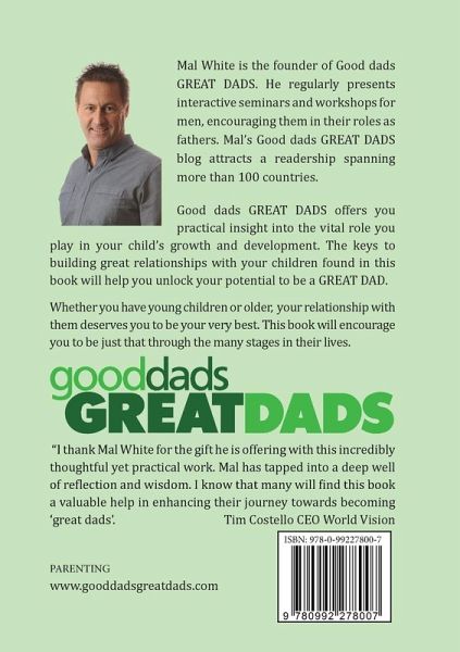 Good dads GREAT DADS offers you practical insight into the vital role you play in your child's growth and development. The keys to building great relationships with your children found in this book will help you unlock your potential to be a GREAT DAD. Whether you have young children or older, your relationship with them deserves you to be your very best. This book will encourage you to be just that through the many stages in their lives.