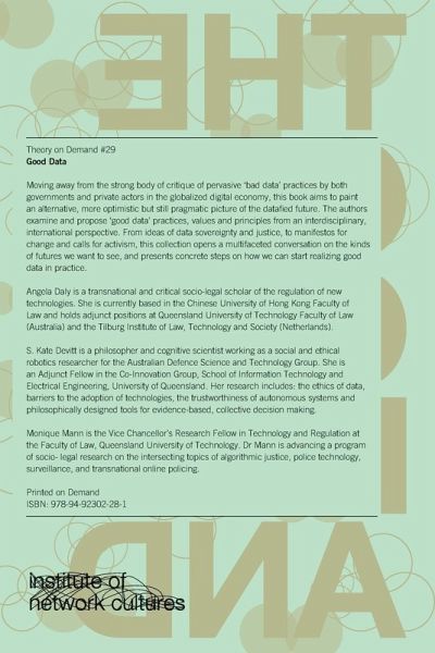 Moving away from the strong body of critique of pervasive ?bad data? practices by both governments and private actors in the globalized digital economy, this book aims to paint an alternative, more optimistic but still pragmatic picture of the datafied future. The authors examine and propose ?good data? practices, values and principles from an interdisciplinary, international perspective. From ideas of data sovereignty and justice, to manifestos for change and calls for activism, this collection opens a multifaceted conversation on the kinds of futures we want to see, and presents concrete steps on how we can start realizing good data in practice.