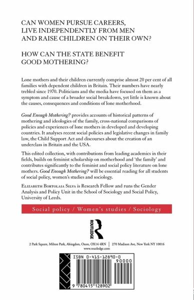 Good Enough Mothering? provides accounts of historical patterns of mothering and ideologies of the family with cross-national comparisons of policies and experience of lone motherhood in developed and developing countries. Countries include: Britain, US, Norway, South Africa, Kenya, Thailand, India, Brazil and the Caribbean. This engaging edited collection will appeal to students of social policy, women's studies and social work.