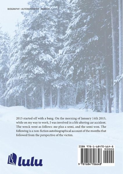 2015 started off with a bang. On the morning of January 14th 2015, while on my way to work, I was involved in a life altering car accident. The wreck went as follows: me plus a semi, and the semi won. The following is a non-fiction autobiographical account of the months that followed from the perspective of the victim.