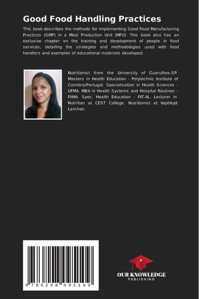 This book describes the methods for implementing Good Food Manufacturing Practices (GMP) in a Meal Production Unit (MFU). This book also has an exclusive chapter on the training and development of people in food services, detailing the strategies and methodologies used with food handlers and examples of educational materials developed.