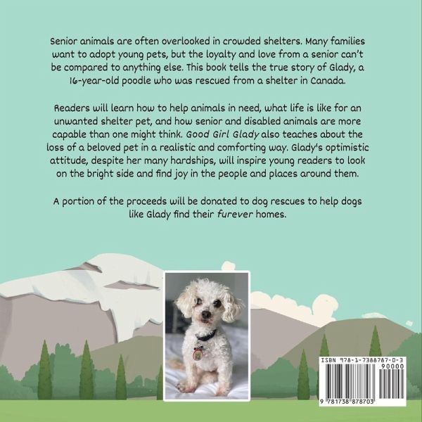Senior animals are often overlooked in crowded shelters. Many families want to adopt young pets, but the loyalty and love from a senior can't be compared to anything else. This book tells the true story of Glady, a 16-year-old poodle who was rescued from a shelter in Canada. Readers will learn how to help animals in need, what life is like for an unwanted shelter pet, and how senior and disabled animals are more capable than one might think. Good Girl Glady also teaches about the loss of a beloved pet in a realistic and comforting way. Glady's optimistic attitude, despite her many hardships, will inspire young readers to look on the bright side and find joy in the people and places around them.