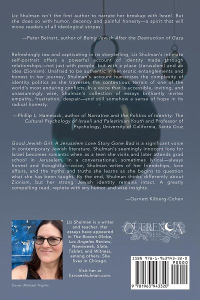 Liz Shulman isn't the first author to narrate her breakup with Israel. But she does so with humor, decency and painful honesty-a spirit that will move readers of all ideological stripes.-Peter Beinart, author of Being Jewish After the Destruction of GazaRefreshingly raw and captivating in its storytelling, Liz Shulman's intimate self-portrait offers a powerful account of identity made through relationships-not just with people, but with a place (Jerusalem) and an idea (Zionism). Unafraid to be authentic in her erotic entanglements and honest in her journey, Shulman's account humanizes the complexity of identity politics as she traverses the contentious terrain of one of the world's most enduring conflicts. In a voice that is accessible, inviting, and unassumingly wise, Shulman's collection of essays brilliantly invites empathy, frustration, despair-and still somehow a sense of hope in its radical honesty.-Phillip L. Hammack, author of Narrative and the Politics of Identity: The Cultural Psychology of Israeli and Palestinian Youth and Professor of Psychology, University of California, Santa CruzGood Jewish Girl: A Jerusalem Love Story Gone Bad is a significant voice in contemporary Jewish literature. Shulman's seemingly innocent love for Israel becomes romantic when as a teen she visits and later attends grad school in Jerusalem. In a conversational, sometimes lyrical-always honest and thoughtful-voice, Shulman writes of her friendships, love affairs, and the myths and truths she learns as she begins to question what she has been taught. By the end, Shulman thinks differently about Zionism, but her strong Jewish identity remains intact. A greatly compelling read, replete with wry humor and wise insights.-Garnett Kilberg-Cohen