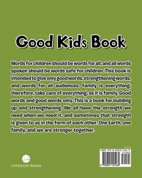 Words for children should be words for all, and all words spoken should be words safe for children. This book is intended to give only good words, strengthening words, and words for all audiences. Family is everything; therefore, take care of everything, as it is family. Good words and good words only. This is a book for building up and strengthening. We all have the strength we need when we need it, and sometimes that strength is given to us in the form of each other. One Earth, one family, and we are stronger together.