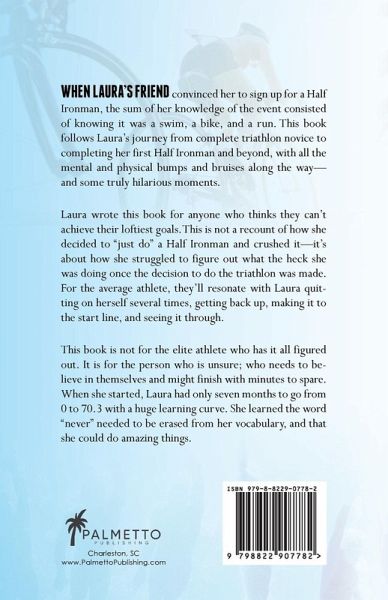 In October 2020, a friend convinced Laura to sign up for a Half Ironman-even though the sum of her knowledge of the event consisted of only knowing it was a swim, a bike, and a run. When she started, Laura had only seven months to go from 0 to 70.3 with a huge learning curve. This book follows Laura's journey from complete triathlon novice to completing her first Half Ironman and beyond, with all the mental and physical bumps and bruises along the way-and some truly hilarious moments. Laura wrote this book for anyone who thinks they can't achieve their loftiest goals. It is not for the elite athlete who has it all figured out. It is for the person who is unsure; who needs to believe in themselves and might finish with minutes to spare.