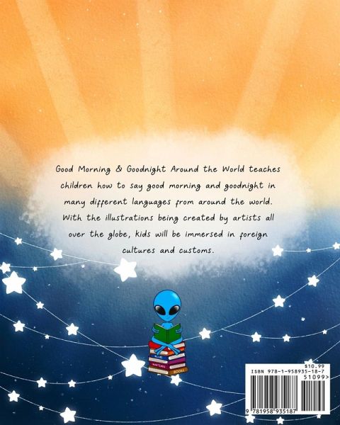 Good morning! Boom dia! Buongiorno! Good Morning & Good Night Around the World teaches children how to say good morning and good night in many different languages from around the world. With beautiful illustrations created by artists all around the world, kids will be immersed in foreign cultures and customs! Includes French, Spanish, Italian, Japanese, Mandarin Chinese, German, Portuguese, Swahili, Hindi, Bulgarian, and English. Good night! Bonsoir! Buenas noches!