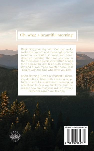 Beginning your day with God can really make the day rich and meaningful, not to mention successful, in ways you never dreamed possible. The time you sow in the morning is a precious seed that brings forth a beautiful day, filled with strength, joy, and a love made sweeter because it begins with the One who loves you best. Good Morning, God is a wonderful morning devotional filled with inspiring scriptures, true-to-life stories, and encouraging reflections to help you fulfill the promise of each new day that your loving heavenly Father has given you to enjoy.