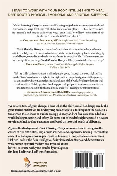 LEARN TO WORK WITH YOUR BODY INTELLIGENCE TO HEAL DEEP-ROOTED PHYSICAL, EMOTIONAL AND SPIRITUAL SUFFERING We are at a time of great change, a time when the old 'normal' has disappeared. The great transition that we are undergoing collectively is a dark night of the soul. It's a time when the anchors of our life are ripped away and we find ourselves adrift in a world lacking meaning and safety. To come out of the dark night we need a new set of values, which are life-sustaining and based on love and health of all beings.Against this background Good Morning Henry addresses how we can recognize the causes of our difficulties, implement solutions and experience healing. Fortunately, each of us has a precious helper inside us to assist. This consciousness sometimes is called "the inner body" or "body elemental". Tanis Helliwell calls it "the body intelligence" or Henry and demonstrates with humor, spiritual wisdom and mystical ability how to co-create with your own body intelligence for deep healing and self-transformation.