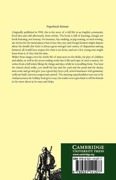 Originally published in 1942, this is the story of a full life in an English community (as The Village Carpenter was) lived first and told afterwards, from within. Walter Rose ranges over the whole life of man-next-door-to-the-fields, the play of children and adults, as well as the never-ending work that is the life and topic of such a society. He writes from a full mind, liking the things and days while he is recalling them. The amusing superficialities turn out to be vital processes; the holiday look gives way; the reader never gets back to tell his friends in the street about it; he stays and helps.