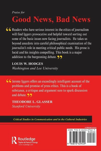 Good News, Bad News examines the role that journalism ethics play in shaping the direction and priorities of the press. The focus will primarily be on newspapers because it is in newspapers that the battle for American journalism's soul is still being fought.