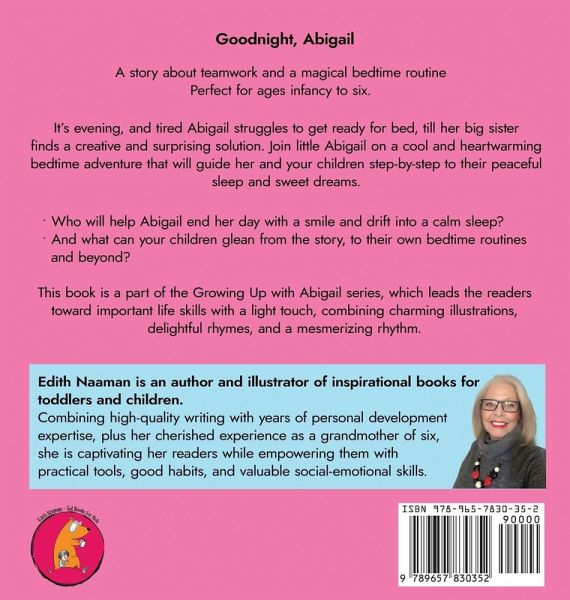 Do your children struggle to wind down and get ready for bed? Is bedtime in your home a daily challenge, often turning into a sort of battle filled with frustration, raised voices, and a lingering sense of exhaustion? The book "Goodnight, Abigail" transforms the often-tricky bedtime routine into a delightful, imaginative adventure that guides children step by step into a calm and cozy sleep-just the way they love it! This charming story follows little Abigail, who, despite being tired and her intensifying yawning, finds it hard to bid the day goodbye. Luckily, her big sister comes to the rescue, enlisting their beloved plush animals for a creative mission that will spark your child's imagination and help you use your stuffed animals to gently ease the little ones into bedtime with a smile. Good Night, Abigail is the first book in the Growing Up with Abigail series, designed to equip young readers with essential life skills through lighthearted storytelling, captivating illustrations, charming rhymes, and a mesmerizing rhythm. A perfect read-aloud for bedtime! Younger children will adore the colorful illustrations and sweet connection to their own stuffed animals. Older children will enjoy following Abigail and her big sister on their playful adventure toward a peaceful night's sleep. And for you - there is a special bonus: A short and sweet, dedicated parent's page, written by an experienced parenting expert, packed with valuable insights and practical tools to make bedtime smoother and more enjoyable for the whole family. Grab your copy today and help your child discover the magic of creativity, imagination, and teamwork-on the way to a calm and restful night's sleep!