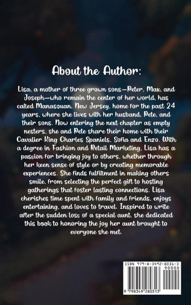 Good night, Gioia Mia by Lisa Ferraro is a heartwarming tale of magic, love, and the power of spreading joy. Set in a picturesque village where the sun paints the sky gold and the wind carries secrets through the trees, this enchanting story follows the adventures of Aunt Nancy, a special aunt known for her magical cream puffs and her loving nickname for everyone - Gioia Mia, meaning My Joy in Italian. When the village loses its laughter and colors fade into dullness, Aunt Nancy and her curious nephew Lorenzo embark on a whimsical quest to restore joy to their home. Along the way, they meet charming magical creatures, from Luminoso, the shimmering-winged elf, to Coccolino, the gentle furry friend with a calming purr, and Speranza, a lonely fairy in search of her lost wand. With kindness as their compass and love as their guide, Aunt Nancy and Lorenzo teach readers young and old that joy is a gift meant to be shared - and that even the smallest act of kindness can light up the darkest corners. Perfect for bedtime reading, Good Night, Gioia Mia will leave children comforted and inspired, with hearts full of joy and dreams of magical adventures.