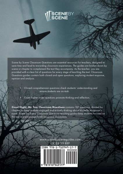 Good Night, Mr. Tom Classroom Questions is a book for English teachers who are teaching Good Night, Mr. Tom by Michelle Magorian and intend to set questions for homework or classwork. Good Night, Mr. Tom Classroom Questions contains 187 questions, divided by chapter, to keep students engaged and actively thinking about the novel. Why choose to study Good Night, Mr. Tom by Michelle Magorian ? Themes of war, abuse and the power of friendship. The setting of wartime Britain. The developing friendship of Willie and Mr. Tom. Interesting characters - gruff Mr. Tom and sickly Willie Beech. Exciting storyline. Scene by Scene guides are teaching resources. They are short books of questions, designed to save teachers time and lead to rewarding classroom experiences. Each guide is broken down by scene or chapter, to match and complement the text it accompanies. This means that the teacher is provided with a clear list of questions, at every stage of teaching the text. These questions can be used in class, or as homework, and so provide underlying structure to lesson planning. Classroom Questions teaching guides contain both closed, comprehension testing questions, and open, higher order questions, exploring student response, opinion and analysis. Closed questions can be used to check understanding and make sure students are on-task, while open questions promote thinking and reflection. In this way, Scene by Scene Classroom Questions keep students engaged with and focused on the text, and involved in classroom discussion.