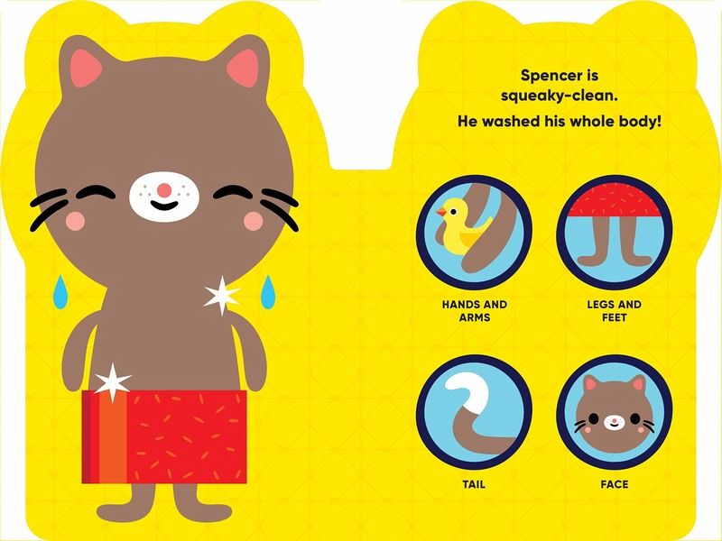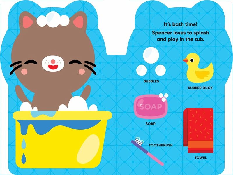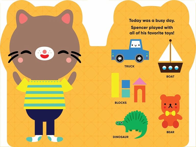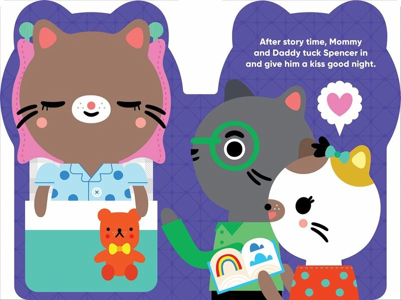 Meet Spencer! This sweet little cat stars in a series of board books (die-cut in the shape of Spencer, with cat ears) that introduce early vocabulary and daily routines to babies and toddlers, in bright and charming art and simple text. Good Night Spencershares a cozy bedtime routine with young readers.