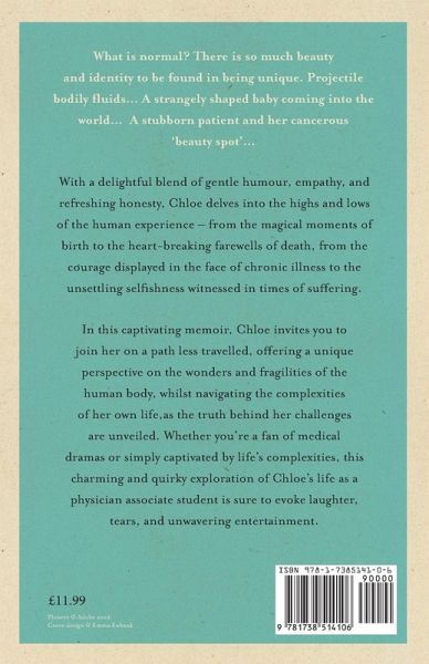 What is normal? There is so much beauty and identity to be found in being unique. Projectile bodily fluids... A strangely shaped baby coming into the world... A stubborn patient and her cancerous 'beauty spot'... With a delightful blend of gentle humour, empathy, and refreshing honesty, Chloe delves into the highs and lows of the human experience - from the magical moments of birth to the heart-breaking farewells of death, from the courage displayed in the face of chronic illness to the unsettling selfishness witnessed in times of suffering. In this memoir, Chloe invites you to join her on a path less travelled, offering a unique perspective on the wonders and fragilities of the human body, whilst navigating the complexities of her own life, as the truth behind her challenges are unveiled. Whether you're a fan of medical dramas or simply captivated by life's complexities, this charming and quirky exploration of Chloe's life as a physician associate student is sure to evoke laughter, tears, and unwavering entertainment.