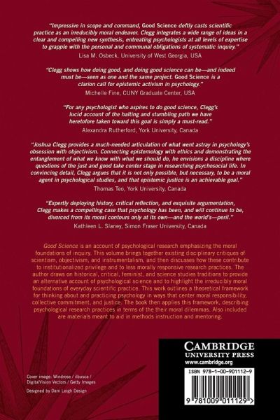 Introduction Part I: Clearing the Ground: 1. Scientism 2. Objectivism 3. Instrumentalism Part II. Good Science: 4. What scientists do 5. Justification 6. An open disciplinary politics 7. A committed research praxis Part III. Charting the Moral Geography of Psychological Research: 8. Domain and theory choice 9. The design and conduct of research 10. The interpretation and reporting of research 11. Conclusion Appendix A: Instructor's guide Appendix B: An example master's-level curriculum Appendix C: Questions to aid moral reflection in research design References Index.