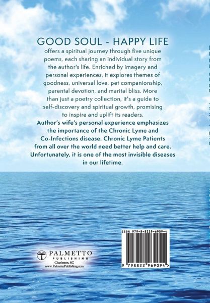 Unveiling Life's Spiritual Journey Through Poems: Universe's Love, The Power of Goodness, Pets' Affection, Parents' Devotion, and Angelic Spouse's Charm. Delve into a world of spiritual enlightenment through the author's emotional journey, captured beautifully in the form of five distinct poems, each with its unique story. The book, Good Soul - Happy Life, is a compilation of heartfelt verses that delve into various aspects of life, illuminating the path of spirituality and positivity. The book starts with 'Our Universe Love', a poem that explores the boundless affection and guidance we receive from the cosmos. It is followed by 'Being A Good Person', a profound poem that emphasizes the essence of goodness and its impact on our lives. The next poem, 'Our Pets' Love', is a tribute to our furry friends, celebrating their unconditional love and companionship, a testament to the author's life experiences with pets. We then move on to 'My Parents' Love', a touching ode to the author's parents' unwavering devotion and the lessons they imparted. The book concludes with 'My Beautiful Angel Wife', a charming tribute to the author's spouse, encapsulating the angelic charm and love that she brings to his life. Each poem is accompanied by a 'Story Behind the Poem' section, providing readers with a deeper understanding of the author's spiritual experiences that inspired the verses. The book is adorned with images and pictures, further enhancing the reading experience by providing a visual representation of the author's journey. Good Soul - Happy Life is more than a book of poems; it's a spiritual guide that inspires readers to embark on their journey towards self-discovery and spiritual growth. It is a testament to the power of love, the strength of goodness, and the value of life's simple pleasures. This book is a must-read for anyone seeking inspiration and a fresh perspective on life. Get ready to embark on a spiritual journey like no other, as you unravel the intricacies of life through the insightful verses of Good Soul - Happy Life. This book promises to touch your heart, uplift your spirit, and inspire you to appreciate life's beautiful journey. Author's wife's personal experience emphasizes the importance of the Chronic Lyme and Co-Infections disease. Chronic Lyme Patients from all over the world need better help and care.