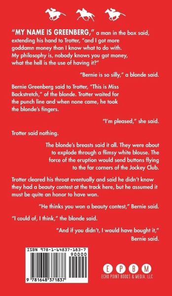 Trotter never comes out ahead at the racetrack. But maybe that's because his lucky day is still just around the corner. One day, to the surprise of his down-and-out buddies, Trotter's luck changes, and he finds himself in the boxes with the VIPs. But should he quit while he's ahead? Or should he... LET IT RIDE "Jay Cronley is surely one of the funniest writers alive!" -Evan Hunter "Cronley has a dead-on ear for the American cliché." -Los Angeles Times Book Review "He is the kind of writer who, because there is no one else quite like him, could easily become an addiction." -The New York Times Book Review Another Jay Cronley title you're sure to enjoy is Funny Farm, a story of city folk who find that the dream life in the country can be a bit of a nightmare.