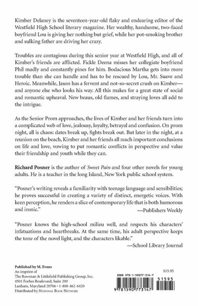 Kimber Delaney is the seventeen-year-old flaky and endearing editor of the Westfield High School literary magazine. Her wealthy, handsome, two-faced boyfriend Lou is giving her nothing but grief, while her pot-smoking brother and sulking father are driving her crazy. Troubles are contagious during this senior year at Westfield High, and all of Kimber’s friends are afflicted. Fickle Deena misses her collegiate boyfriend Phil madly and constantly pines for him. Bodacious Martha gets into more trouble than she can handle and has to be rescued by Lou, Mr. Suave and Heroic. Meanwhile, Jason has a fervent and not-so-secret crush on Kimber—and anyone else who looks his way. All this makes for a great state of social and romantic upheaval. New beaus, old flames, and straying loves all add to the intrigue. As the Senior Prom approaches, the lives of Kimber and her friends turn into a complicated web of love, jealousy, loyalty, betrayal and confusion. On prom night, all is chaos: dates break up, fights break out. But later in the night, at a reunion on the beach, Kimber and her friends all reach important conclusions on life and love, vowing to put romantic conflicts in perspective and value their friendship and youth while they can.