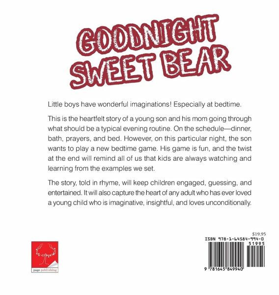 Little boys have wonderful imaginations! Especially at bedtime. This is the heartfelt story of a young son and his mom going through what should be a typical evening routine. On the schedule-dinner, bath, prayers, and bed. However, on this particular night, the son wants to play a new bedtime game. His game is fun, and the twist at the end will remind all of us that kids are always watching and learning from the examples we set. The story, told in rhyme, will keep children engaged, guessing, and entertained. It will also capture the heart of any adult who has ever loved a young child who is imaginative, insightful, and loves unconditionally.