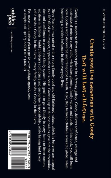 Goody is a superhero from another planet in a faraway galaxy. Goody delivers confidence, courage and motivational notes to every child, while strengthening family values and bonds. In this book, you will learn how Goodies were discovered and transported to Earth. Here, they befriend children across the globe, while becoming a positive influence in their everyday lives.