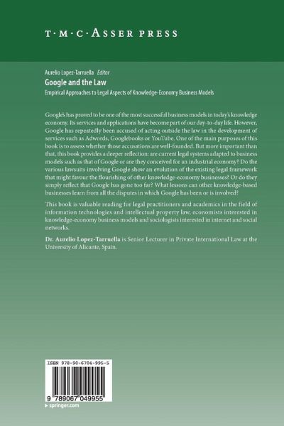 Google's has proved to be one of the most successful business models in today's knowledge economy. Its services and applications have become part of our day-to-day life. However, Google has repeatedly been accused of acting outside the law in the development of services such as Adwords, Googlebooks or YouTube. One of the main purposes of this book is to assess whether those accusations are well-founded. But more important than that, this book provides a deeper reflection: are current legal systems adapted to business models such as that of Google or are they conceived for an industrial economy? Do the various lawsuits involving Google show an evolution of the existing legal framework that might favour the flourishing of other knowledge-economy businesses? Or do they simply reflect that Google has gone too far? What lessons can other knowledge-based businesses learn from all the disputes in which Google has been or is involved?This book is valuable reading for legal practitioners and academics in the field of information technologies and intellectual property law, economists interested in knowledge-economy business models and sociologists interested in internet and social networks.Dr. Aurelio Lopez-Tarruella is Senior Lecturer in Private International Law at the University of Alicante, Spain.