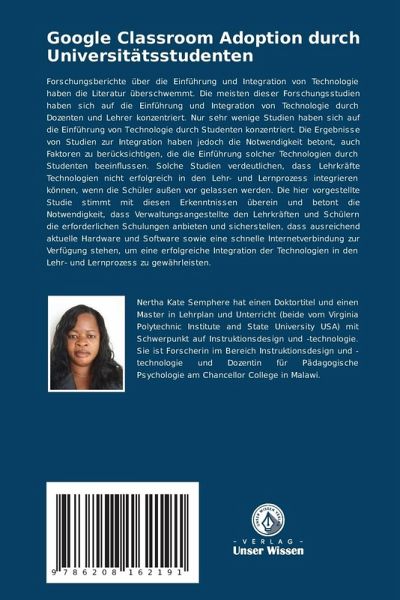 Forschungsberichte über die Einführung und Integration von Technologie haben die Literatur überschwemmt. Die meisten dieser Forschungsstudien haben sich auf die Einführung und Integration von Technologie durch Dozenten und Lehrer konzentriert. Nur sehr wenige Studien haben sich auf die Einführung von Technologie durch Studenten konzentriert. Die Ergebnisse von Studien zur Integration haben jedoch die Notwendigkeit betont, auch Faktoren zu berücksichtigen, die die Einführung solcher Technologien durch Studenten beeinflussen. Solche Studien verdeutlichen, dass Lehrkräfte Technologien nicht erfolgreich in den Lehr- und Lernprozess integrieren können, wenn die Schüler außen vor gelassen werden. Die hier vorgestellte Studie stimmt mit diesen Erkenntnissen überein und betont die Notwendigkeit, dass Verwaltungsangestellte den Lehrkräften und Schülern die erforderlichen Schulungen anbieten und sicherstellen, dass ausreichend aktuelle Hardware und Software sowie eine schnelle Internetverbindung zur Verfügung stehen, um eine erfolgreiche Integration der Technologien in den Lehr- und Lernprozess zu gewährleisten.