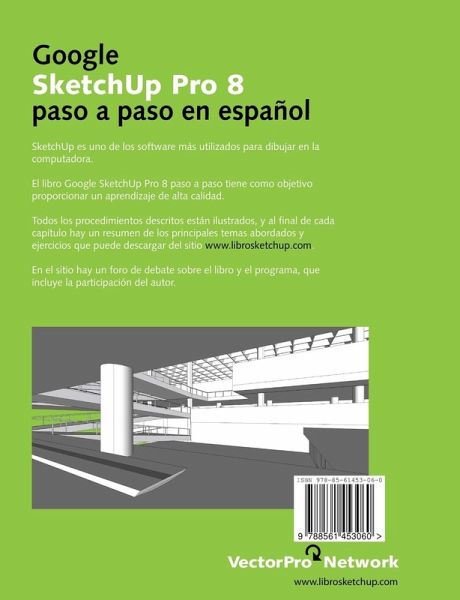 El libro Google SketchUp Pro 8 paso a paso en español tiene como objetivo proporcionar un aprendizaje de alta calidad. Todos los procedimientos descritos están ilustrados, y al final de cada capítulo hay un resumen de los principales temas abordados y Actividades Propuestas, ejercicios que puede descargar del sitio http://www.librosketchup.com. En el sitio hay un foro de debate sobre el libro y el programa, que incluye la participación del autor.