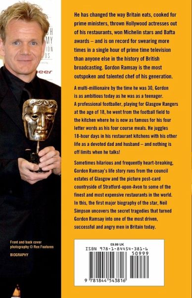 A wonderful biography of the undisputed king of celebrity chefs, Neil Simpson paints a fascinating picture of the man in full, and uncovers the secret tragedies that turned Gordon Ramsay into one of the most driven, successful and angry men in Britain. He details: the violent, alcoholic, absent father who died just days after the pair had been reconciled as adults; the best-friend and protege whose bizarre suicide came hours after the two had shared a final meal; the decade-long battle to save his younger brother from heroin addiction and crime; and, the real reason why Gordon wasn't at the birth of any of his four children - and has never changed a nappy in his life. Sometimes hilarious and frequently heart-breaking, Gordon Ramsay's life story runs from the council estates of Glasgow and the picture post-card countryside of Stratford-upon-Avon to some of the finest and most expensive restaurants in the world. This is his incredible, inspiring story.