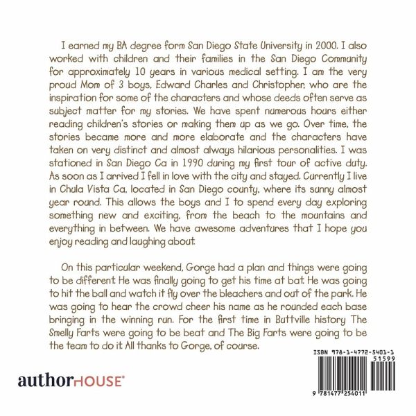 On this particular weekend, Gorge had a plan and things were going to be different. He was finally going to get his time at bat. He was going to hit the ball and watch it fly over the bleachers and out of the park. He was going to hear the crowd cheer his name as he rounded each base bringing in the winning run. For the first time in Buttville history The Smelly Farts were going to be beat and The Big Farts were going to be the team to do it. All thanks to Gorge, of course.