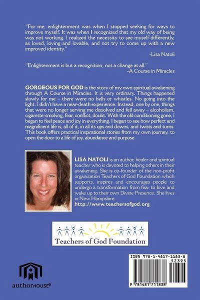There is no world! Healing is the guaranteed gift for those who are prepared to learn there is no world. What you see reflects your thinking, and your thinking reflects what you want to see. As you become aware that you are causing everything that seems to happen to you, you will gain a new understanding of the importance of your thoughts and emotions. This book will transform the way you see yourself and the world. As you awaken to the remembrance of God, you will know that you have never been alone. Gorgeous for God offers practical teachings based on A Course in Miracles.
