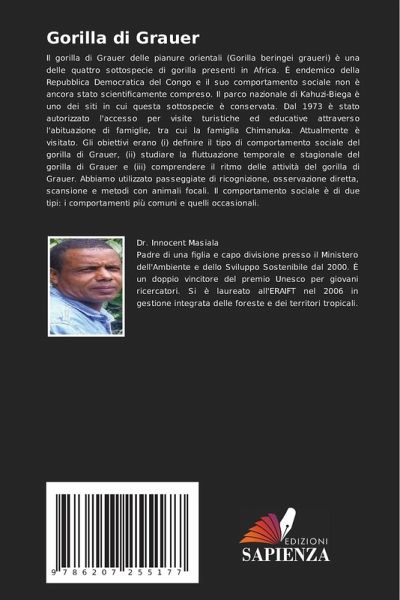 Il gorilla di Grauer delle pianure orientali (Gorilla beringei graueri) è una delle quattro sottospecie di gorilla presenti in Africa. È endemico della Repubblica Democratica del Congo e il suo comportamento sociale non è ancora stato scientificamente compreso. Il parco nazionale di Kahuzi-Biega è uno dei siti in cui questa sottospecie è conservata. Dal 1973 è stato autorizzato l'accesso per visite turistiche ed educative attraverso l'abituazione di famiglie, tra cui la famiglia Chimanuka. Attualmente è visitato. Gli obiettivi erano (i) definire il tipo di comportamento sociale del gorilla di Grauer, (ii) studiare la fluttuazione temporale e stagionale del gorilla di Grauer e (iii) comprendere il ritmo delle attività del gorilla di Grauer. Abbiamo utilizzato passeggiate di ricognizione, osservazione diretta, scansione e metodi con animali focali. Il comportamento sociale è di due tipi: i comportamenti più comuni e quelli occasionali.