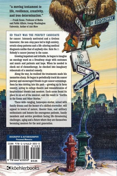 Ed Tracy was the perfect candidate for cancer. Intensely motivated and a tireless innovator, the non-stop pace led to high anxiety, erratic sleep patterns and a life-altering medical diagnosis unlike that of anybody else. Rule No.1: Nobody's cancer journey is the same. Growing impatient and irritable, he began to imagine an oncology ward on a Broadway stage with costumes and music and patients and hope. When he needed to check out of chemotherapy, he checked into imaginary rehearsals of a musical comedy. Along the way, he realized the treatments made his memories sharp. He began to periodically track his cancer journey and encouraged friends to get cancer screenings. Soon he was delving into his past-growing up in farm country, acting in college theatre and remembrances of inspirational friends and mentors. Each scene found its place in an act of the musical, and the result is "Gorilla in the Room and Other Stories." These wide-ranging, homespun stories, mixed with family drama and the humor of a skilled storyteller, will appeal to lovers of nature, theater fans, and military enthusiasts and honors the courageous patients, family members and service providers facing life-threatening challenges, aging and a future where they are themselves becoming mentors for the next generation.