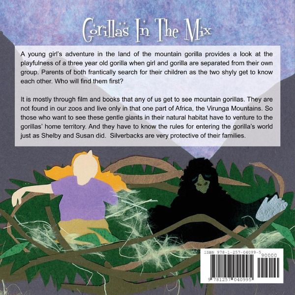 A young girl's adventure in the land of the mountain gorilla provides a look at the playfulness of a three year old gorilla when girl and gorilla are separated from their own group. Parents of both frantically search for their children as the two shyly get to know each other. Who will find them first? It is mostly through film and books that any of us get to see mountain gorillas. They are not found in our zoos and live only in that one part of Africa, the Virunga Mountains. So those who want to see these gentle giants in their natural habitat have to venture to the gorillas' home territory. And they have to know the rules for entering the gorilla's world just as Shelby and Susan did. Silverbacks are very protective of their families.