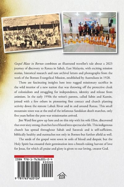 Gospel Blaze in Borneo combines an illustrated traveller's tale about a 2023 journey of discovery to Ranau in Sabah, East Malaysia, with exciting mission stories, historical research and rare archival letters and photographs from the work of the Borneo Evangelical Mission, established by Australians in 1928. There are fascinating insights here into rugged missionary sacrifice in the wild interior of a new nation that was throwing off the protective cloak of colonialism and struggling for independence, identity and release from animism. In the early 1950s the writer's parents, called Sabin and Kumin, joined with a few others in pioneering first contact and church planting activity down the remote Labuk River and in and around Ranau. This small mountain town was at the end of the infamous Sandakan death marches, only five years before the post-war missionaries arrived. Jim Ward first grew up here and on this trip with his wife Ellen, discovered that over sixty strong churches have blazed into spectacular life. This indigenous church has spread throughout Sabah and Sarawak and is self-sufficient, biblically healthy and outreaches not only in Borneo but further afield as well. The seeds of the gospel were sown in soils of blood and despair, but the Holy Spirit has ensured their germination into a breath-taking harvest of love for Jesus, for which all praise and glory is given to our loving, creator God.