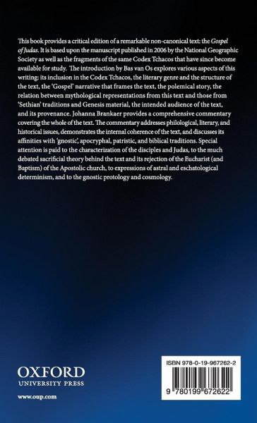 This book provides a critical edition of a major non-canonical Gospel: the Gospel of Judas. It is based upon the manuscript published in 2007 by the National Geographic Society as well as the fragments of the same codex Tchacos that have since become available for study. The introduction by Bas van Os explores various aspects of this writing: its inclusion in the Codex Tchacos, the literary genre and the structure of the text, the "Gospel" narrative that frames the text, the polemical story, the relation between mythological representations from this text and those from "Sethian" traditions and Genesis material, the intended audience of the text, and its provenance. Johanna Brankaer provides a comprehensive commentary covering the whole of the text. It contains philological as well as substantive elements and unveils the intra-textual coherence as well as the affinities with other, Gnostic, apocryphal, patristic, and biblical traditions. Special attention is paid to the characterization of the disciples and Judas, to the much debated sacrificial theory behind the text and its rejection of the Eucharist (and Baptism) of the apostolic church, to expressions of (astral and eschatological) determinism, and to the Gnostic protology and cosmology.