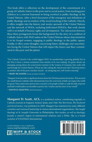 This book offers a reflection on the development of the commitment of a group of Catholic Sisters to the poor and to social justice, from teaching poor children in a convent basement to being involved in public theology at the United Nations. After a brief discussion of the emergence and definitions of public theology and an analysis of the social teaching of the Catholic Church, it offers insights into the history and modus operandi of the United Nations and the network of NGOs, including faith-based RNGOs, that work closely with it on behalf of human rights and development. The interaction between these three protagonists forms the background for the story of a coalition of Catholic Sisters with NGO status at the United Nations whose determination is to be Gospel women, engaging in public theology in the public square. Finally, it offers some thoughts concerning future challenges and uncertainties facing the United Nations that will impact the Sisters and their commitment to the poor and the planet.