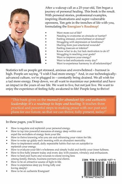 Got Energy? ... 3 Musts to Igniting Your Passion! Imagine living life: Understanding your value, your uniqueness, your purpose – Imagine living with a deep, inner peace. Operating with an ownership mentality, making no excuses, just consistent forward action. – Imagine a powerful drive knowing exactly where you’re going and excited about it. Passionately living from a heart full of love and sharing a contagious enthusiasm – Imagine being an abundant source of encouragement. Learning to welcome and embrace the incredible resource of accountability – Imagine the ability of vulnerability and getting along with everyone. Attracting team members, referral partners, clients, friends and family members through daily renewal and ignited energy – Imagine inspiring the best in yourself and all those around you. With personal stories, professional examples, inspiring illustrations and super-vulnerable openness, Tim gets in the trenches of life with you, formulating the Energizer’s Road-map! After four years of research and referencing hundreds of resources, the result is this 6 x 9, 500-page, easy read with century-old richness and modern-day application! This book gives you the manual for life and leadership; hope and healing. It teaches three practical and powerful steps to living life fully awakened! Join the Energizer Tribe by grabbing yours and one for a friend. Feel stressed, overwhelmed or drained? Need to overcome an obstacle or barrier in your life? Feel insecure or inferior? Are you depressed or lonely? Hurting from past emotional wounds? Struggling in reaching your goals? Know what to do, but lack the internal motivation to do it? Want to have more energy for your life? Want to feel more alive, excited every day and operating enthusiastically? Want to experience harmony in family and client relationships? "Got Energy? … 3 Musts to Igniting Your Passion" can help Learn how to regulate and replenish your personal energy. Learn to tap into powerful resources of energy deep within and expel the swindlers of energy from your life. Learn how to thrive knowing who you are and enhancing your vision for life. Learn to wake up giddy each morning with an abundant mentality. Learn to implement small, daily repeatable habits that work in autopilot to replenish your energy. Learn to evaluate your life’s wholeness and simply build and fortify your inner fullness. Learn to live fully present today with passion, zeal, excitement, vibrancy and enthusiasm. Learn how to heal past hurts and wounds and create a raving fan base among family, friends, business partners and clients. Learn how to be an attractive source of light in life and in business. Learn to live fully and love deeply experiencing deep joy.