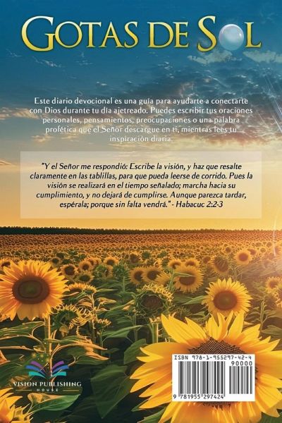 Este diario devocional es una guía para ayudarte a conectarte con Dios durante tu día ajetreado. Puedes escribir tus oraciones personales, pensamientos, preocupaciones o una palabra profética que el Señor descargue en ti, mientras lees tu inspiración diaria. "Y el Señor me respondió: Escribe la visión, y haz que resalte claramente en las tablillas, para que pueda leerse de corrido. Pues la visión se realizará en el tiempo señalado; marcha hacia su cumplimiento, y no dejará de cumplirse. Aunque parezca tardar, espérala; porque sin falta vendrá." - Habacuc 2:2-3