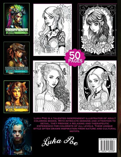 The Goth Beauties coloring book is a perfect blend of beauty and darkness. This coloring book is an ode to the gothic subculture and features 50 uniquely designed gothic beauties. Each book page is intricately designed to provide hours of coloring fun. The book has an array of beautiful, dark, and hauntingly gorgeous women depicted in classic goth attire. The designs are a mix of traditional goth elements with beautiful floral patterns, Victorian-inspired designs, and intricate lacework. This book is ideal for anyone who loves life's dark and beautiful side and wants to explore their creative side. Whether you are an experienced colorist or just starting, this coloring book is a great way to relax, unwind and bring your inner goth to life. Get your copy today and bring some darkness and beauty into your life!