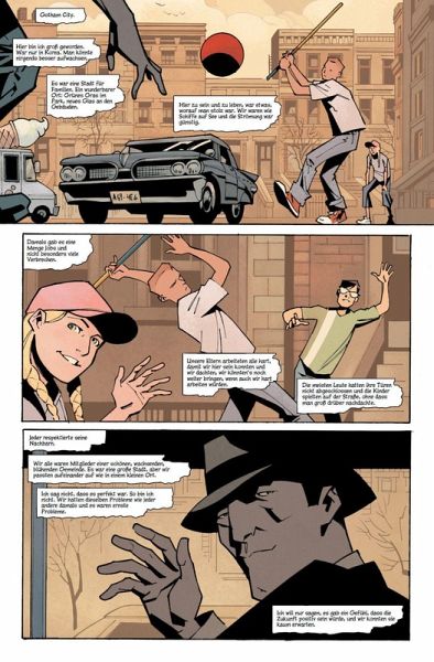 GOTHAMS FINSTERE VERGANGENHEIT Der abgebrühte Privatdetektiv Slam Bradley wird in die Entführung von Helen Wayne verstrickt, der kleinen Tochter von Gothams reichster Familie. Je näher Slam den Geheimnissen von Bruce Waynes Großeltern kommt, desto mehr Prügel muss er einstecken - und desto mehr Leichen tauchen auf. Doch das kann einen Schnüffler wie Bradley natürlich nicht abhalten. Er will um jeden Preis wissen, wer die Fäden im Hintergrund zieht. Dieser Band erzählt auch die Geschichte, wie Gotham City endgültig zu der seelenlosen Stadt wird, die Jahrzehnte später von ihrem Dunklen Ritter gerettet werden muss! Der komplette Hardboiled-Krimi-Geniestreich vom preisgekrönten Top-Autor Tom King (Batman, Rorschach) und Zeichner-Größe Phil Hester (Green Arrow: Auferstehung, Ant-Man) in einem Band.ENTHÄLT: GOTHAM CITY: YEAR ONE 1-6