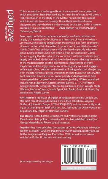 'This is an ambitious and original book, the culmination of a project on which the authors have been working for a number of years. It will prove a real contribution to the study of the Gothic, not an easy topic about which to write in terms of comedy. The authors have found a new viewpoint, and they develop it with style and critical tact, and in a manner accessible to a wide readership.' - David Punter, Professor of English, University of Bristol