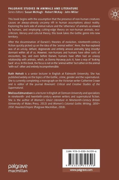 After the dissemination of Darwin's theories of evolution, nineteenth-century fiction quickly picked up on the idea of the 'animal within'. Here, the fear explored was of an unruly, defiant, degenerate and entirely amoral animality lying (mostly) dormant within all of us. However, non-humans and humans have other sorts of encounters, too, and even before Darwin, humans have often had an uneasy relationship with animals, which, as Donna Haraway puts it, have a way of 'looking back' at us. In this book, the focus is not on the 'animal within' but rather on the animal 'with-out':otherand entirely incomprehensible.