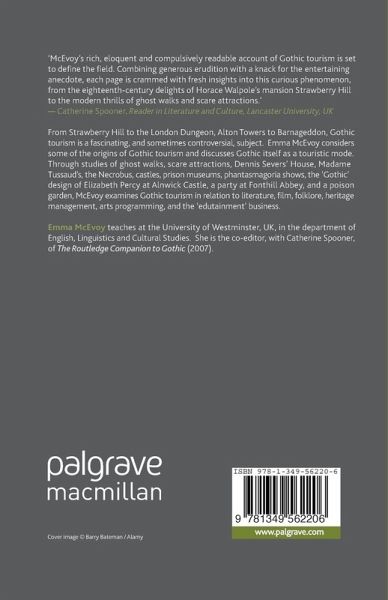 "Gothic Tourism is ... aimed not only at academics but a more general readership. Here, author Emma McEvoy examines everything from waxwork museums to ghost walks to ask what Gothic tourism is and how Gothic works as a touristic mode. ... Gothic Tourism covers an impressive range of sites in its tour of English Gothic ... . Gothic Tourism is a valuable - and highly readable - addition, then to histories of tourism as well as the history of geography ... ." (Jennifer Wallis, World Headpress, worldheadpress.com, May, 2016)