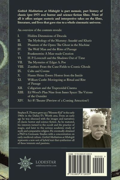 This is a critical thematic study of classic horror and science-fiction films and the literature upon which much of it was based, looked at from the angle of cultural mythologies of the late 19th to early 20thcenturies. It is also in part a memoir of growing up as a Monster Kid during the cultural phase that came to be known as the Monster Craze 1958-1968. Special chapters are devoted to Dracula and Vampires, the Mummy-mythology, the Phantom of the Opera, the Wolf Man and Rites of Passage, Frankenstein, Lovecraft, Edgar A. Poe, Zombies, Cults and Covens, Hanns Heinz Ewers, the films of William Castle, Caligarism and the Trapezoidal Cinema, Ed Wood and finally a section devoted to the more specifically science fiction films of the period. Each section requires its own lens of interpretation based on mythological, psychological and esoteric theories and understandings. Each chapter reveals something ordinarily hidden from observations surrounding the history of this material. The text draws on concepts of folklore, mythology, and the history of religions, as well as psychology and personal experience. This is a hybrid work drawing on a spectrum of disciplines-it is all for fun but only in the most horrifying of ways. Aficionados of the occult, the esoteric, the mysteries of cultural history, and the history of uncanny film and literature will all find something to love in this book. Enter freely and of your own will through the Gothick archways to seek the mysteries within...