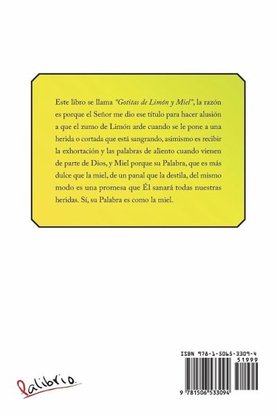 Este libro se llama "Gotitas de Limón y Miel", la razón es porque el Señor me dio ese título para hacer alusión a que el zumo de Limón arde cuando se le pone a una herida o cortada que está sangrando, asimismo es recibir la exhortación y las palabras de aliento cuando vienen de parte de Dios, y Miel porque su Palabra, que es más dulce que la miel, de un panal que la destila, del mismo modo es una promesa que Él sanará todas nuestras heridas. Sí, su Palabra es como la miel.