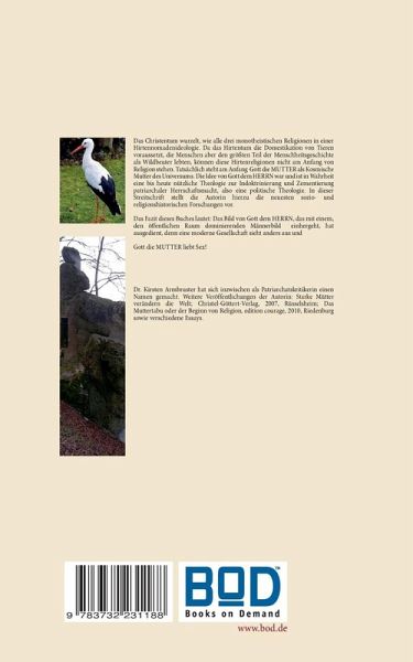 Das Christentum wurzelt, wie alle drei monotheistischen Religionen in einer Hirtennomadenideologie. Da das Hirtentum die Domestikation von Tieren voraussetzt, die Menschen aber den größten Teil der Menschheitsgeschichte als Wildbeuter lebten, können diese Hirtenreligionen nicht am Anfang von Religion stehen. Tatsächlich steht am Anfang Gott die MUTTER als Kosmische Mutter des Universums. Die Idee von Gott dem HERRN war und ist in Wahrheit eine bis heute nützliche Theologie zur Indoktrinierung und Zementierung patriarchaler Herrschaftsmacht, also eine politische Theologie. Eines der Hauptanliegen dieser politischen Theologie war es, Gott die MUTTER abzuschaffen, sie durch Gott den HERRN zu ersetzen und die Mutter gleichzeitig zur Magd des HERRN zu degradieren. In dieser Streitschrift stellt die Autorin hierzu die neuesten sozio- und religionshistorischen Forschungen vor.Das Fazit dieses Buches ist - wie könnte es auch anders sein - politisch und lautet: Das Bild von Gott dem HERRN, das mit einem, den öffentlichen Raum dominierenden Männerbild einhergeht, hat ausgedient, denn eine moderne Gesellschaft sieht anders aus. Und Gott die MUTTER liebt Sex!