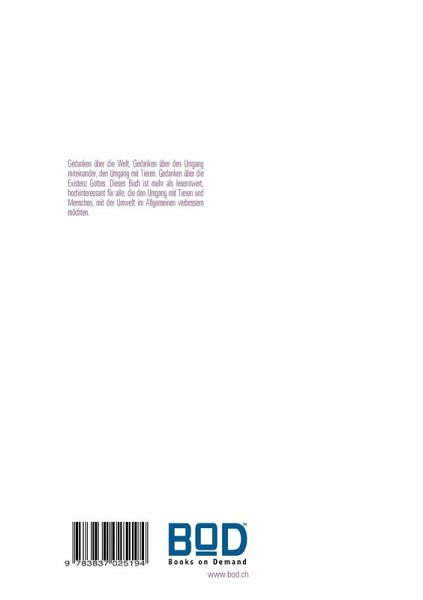 Gedanken über die Welt, Gedanken über den Umgang miteinander, den Umgang mit Tieren. Gedanken über die Existenz Gottes. Dieses Buch ist mehr als lesenswert, hochinteressant für alle, die den Umgang mit Tieren und Menschen, mit der Umwelt im Allgemeinen verbessern möchten.